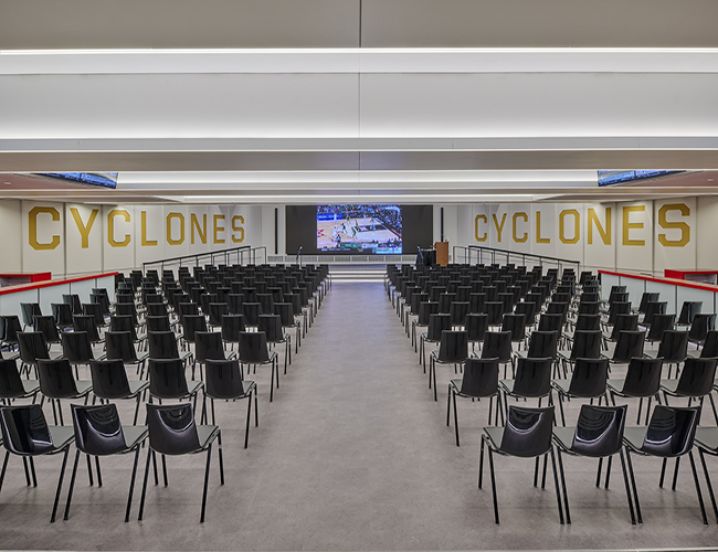 The Scheman Building, managed by Iowa State University’s Athletic Department, underwent a significant renovation to enhance the visitor experience. The transformation introduced a new club space, drawing inspiration from Jonny’s at the Hilton Coliseum.